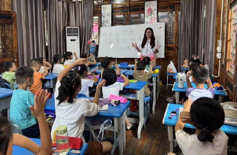 新阶领航,专业赋能筑安全。作为县新联会文旅分会会长,叶强始终秉持“统战凝聚力量,服务温暖人心”理念,带头发挥“四维城”社会服务发展促进中心的统战纽带作用,牵头联动医学大学生志愿者发挥学科优势,将安全救援知识转化为生动课堂。通过生动的案例、模拟演练等形式,向孩子们传授火灾、溺水、地震等突发情况下的自救互救方法。孩子们积极参与模拟场景,学习如何拨打急救电话、进行简单的伤口包扎等实用技能。专业知识与趣味形式的结合,让原本严肃的安全课变成了孩子们乐于参与的“闯关游戏”,通过这些课程,孩子们的安全意识得到显著提高,为他们的暑期生活筑牢了安全防线。