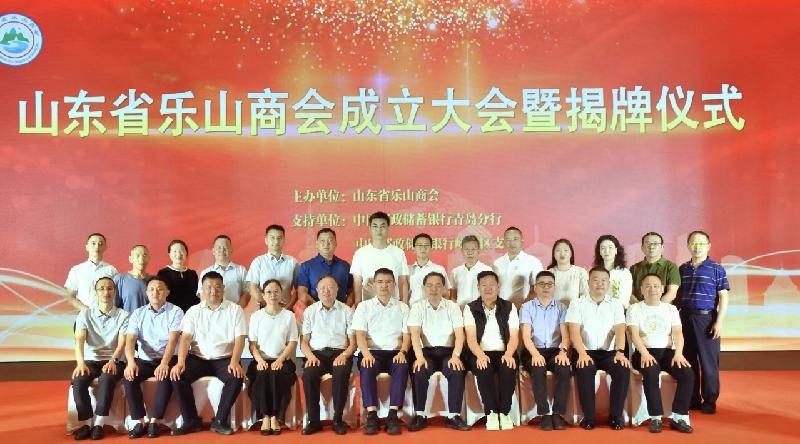 在山东省乐山商会成立大会上,举行山东省乐山商会、商会党支部、乐山市驻山东省农民工服务工作站揭牌仪式,中国邮政储蓄银行股份有限公司青岛分行崂山区支行和山东省乐山商会签订战略合作协议。会前,考察组邀请当地相关部门负责人和企业家座谈,详细介绍乐山特色资源,推介文旅融合、绿色能源、装备制造等主导产业项目,认真听取乐山籍企业家关于更好促进鲁乐两地经济合作的意见和建议。