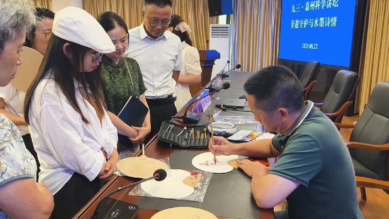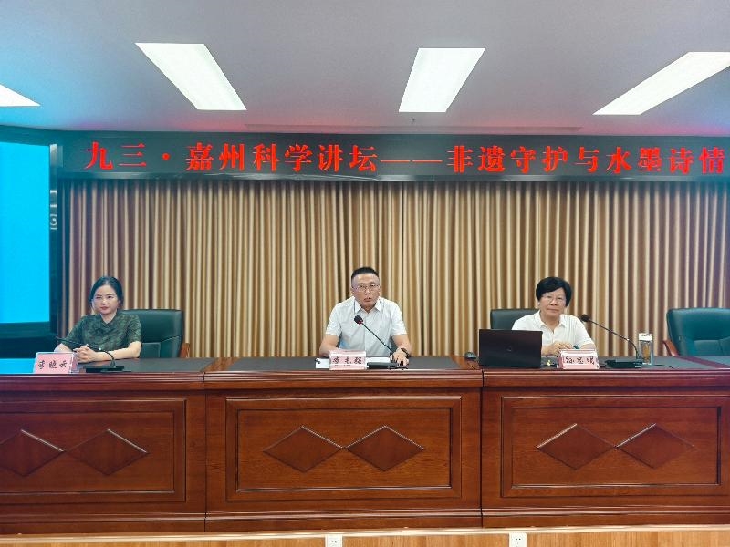 2025年8月22日,九三学社乐山市委会举办“九三·嘉州科学讲坛——非遗守护与水墨诗情”文化专场,邀请国家正高级研究馆员、教授孙忠明,九三学社社员、嘉州画院著名画家沈显威作专题分享。社市委会主委、市体育局局长李志强,社市委会副主委、峨眉山市政协副主席李晓云,社市委会秘书长张瑶参加活动。
