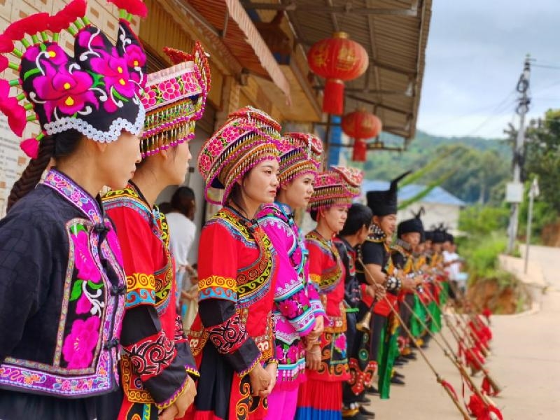 文化共生,彝汉节庆绽放团结之花。非遗共传,彝族长号演奏、蹢脚舞与汉族农耕技艺相互滋养,村内长号队、蹢脚舞队年均演出50余场,婚丧嫁娶中长号鸣响成为共同习俗。节庆共乐,火把节与石榴文化节深度融合,彝汉同胞共跳达体舞、共评“石榴王”,“双语夜校”促进语言互通,“民族团结调解室”实现矛盾化解率100%。村规共守,党员干部带头践行,赵正洪、钟和林等获评“优秀共产党员”,凝聚“彝汉同心、石榴同根”共识。