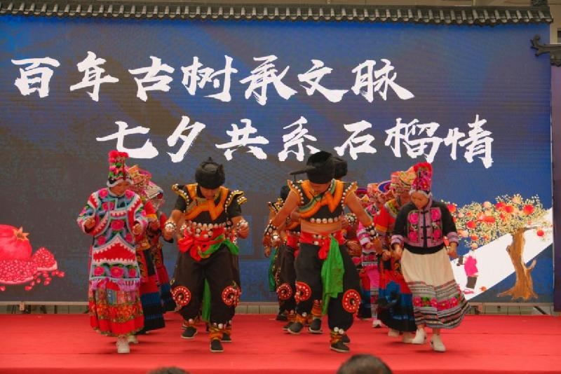 历史回响,石榴古树见证民族共融。“菜籽园”承载着明清时期“湖广填四川”的移民记忆。汉族移民与云南迁入的彝族同胞在此垦荒拓土,历经“官村司府”“兴隆大队”“元隆大队”等沿革,于2020年完成两村合并,形成7个村民小组“大杂居、小聚居”格局。300余年青皮软籽石榴古树,以最原始、最纯粹的“母本之味”见证着彝汉文化交融,长号与农耕技艺在此碰撞,铸就了“你中有我、我中有你”的共同体基因。