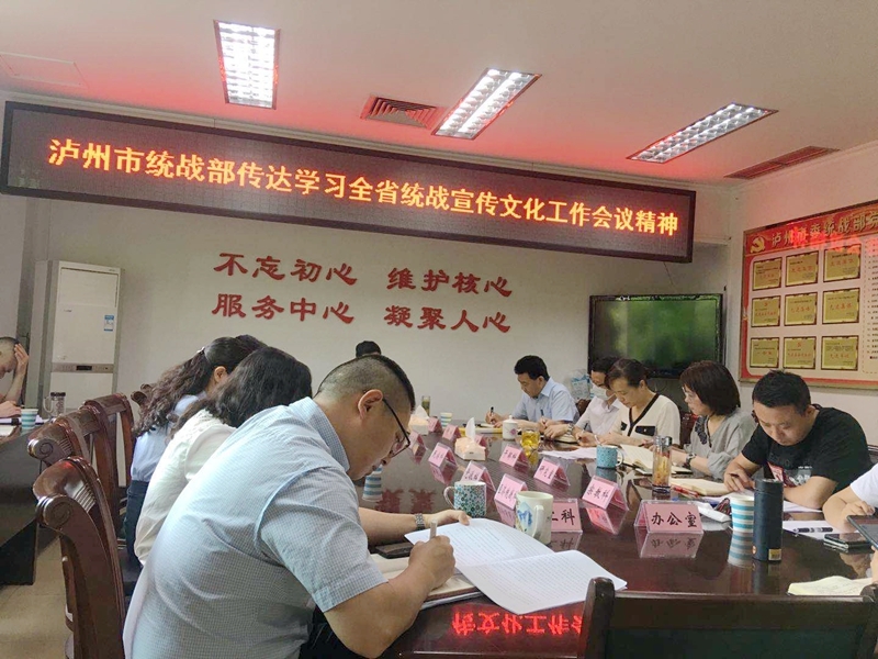 6月1日至2日,泸州市委统战部通过召开机关干部职工大会、区县统战部长专题会议、各民主党派市委会专题会议等,全覆盖传达学习全省统战宣传文化工作会议精神。市委统战部常务副部长韩俊平对全市统战系统做好统战宣传文化工作进行了安排部署。