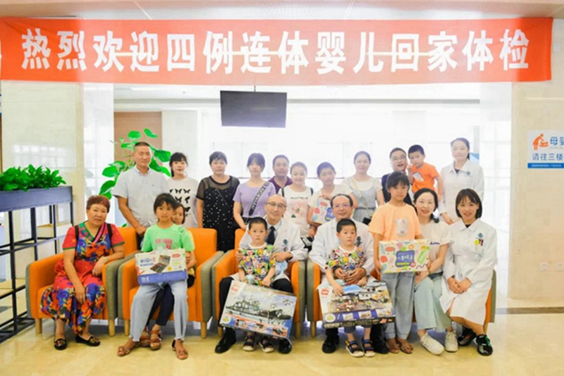按照医院安排,由儿保、儿外、检验、放射、超声诊断等科室专家团队组成了检查组,对孩子们进行了抽血、腹部彩超、心脏彩超、胸部CT等多项检查。为守护4例连体婴儿健康成长,医院给孩子们建立了健康档案,每年一次的健康体检将一直持续到孩子们18岁。
