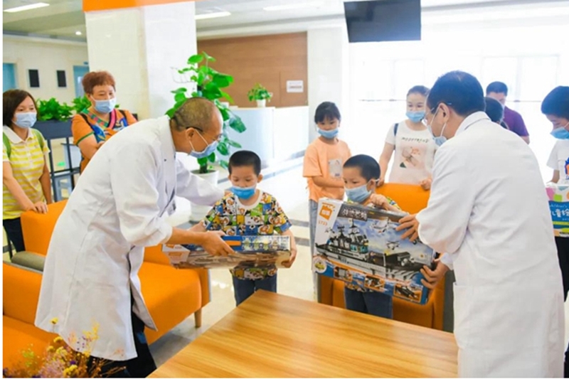 刘铭教授查看孩子们的身体情况,为孩子们送上了礼物,现场一片欢声笑语。医院党委书记惠曦和刘铭教授给小朋友们发放礼物,并拉着每个小朋友的手,告诉孩子们要好好学习,在学校里有没有什么问题,要多跟老师和同学交流。听老师和爸爸妈妈的话,要成长为能够为国家做贡献的人。