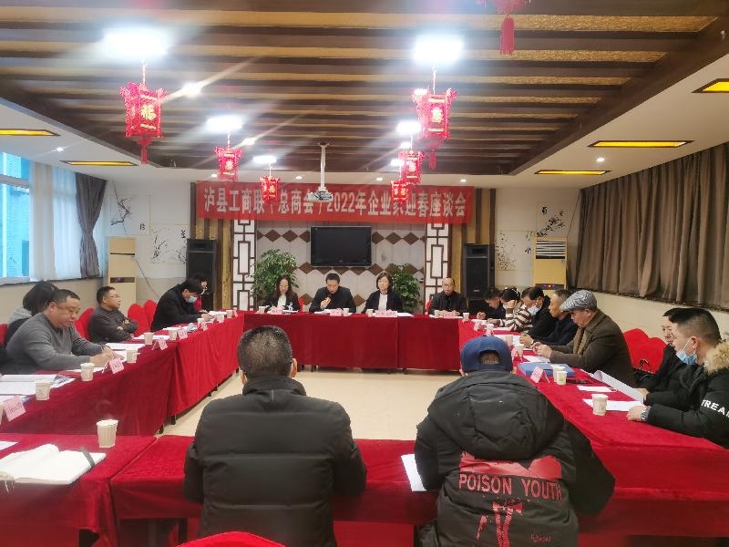 1月24日,泸县工商联(总商会)召开了2022年企业家迎春座谈会,工商联(总商会)十一届常委,直属商会会长、秘书长,全体干部职工参加会议。