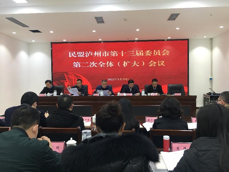 1月25日,中国民主同盟泸州市第十三届委员会第二次全体(扩大)会议在泸州市民主党派会议室召开。民盟泸州市委主委杜旭林,副主委熊建辉、杨静喜、张华、舒健,民盟市委委员,非市委委员的基层组织负责人以及民盟市委机关干部共43人参加了会议,中共泸州市委统战部党派科负责人应邀莅会。会议由副主委熊建辉主持。