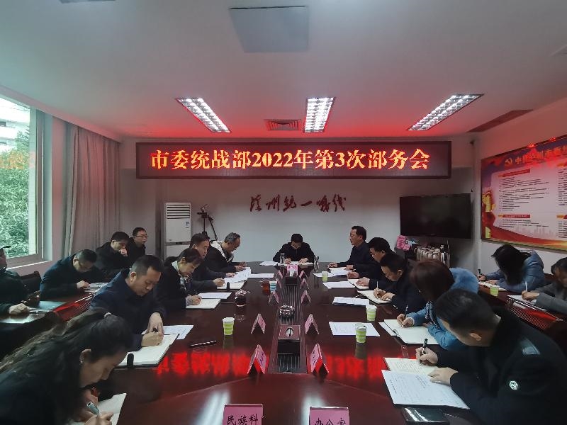 2月7日上午,市委统战部召开部务会,专题传达泸州市委书记杨林兴走访慰问市委统战部干部职工时的讲话精神,研究部署下一阶段工作。市委常委、统战部部长李堂兵主持会议并讲话。部领导班子成员、科室(中心)负责同志参加会议。