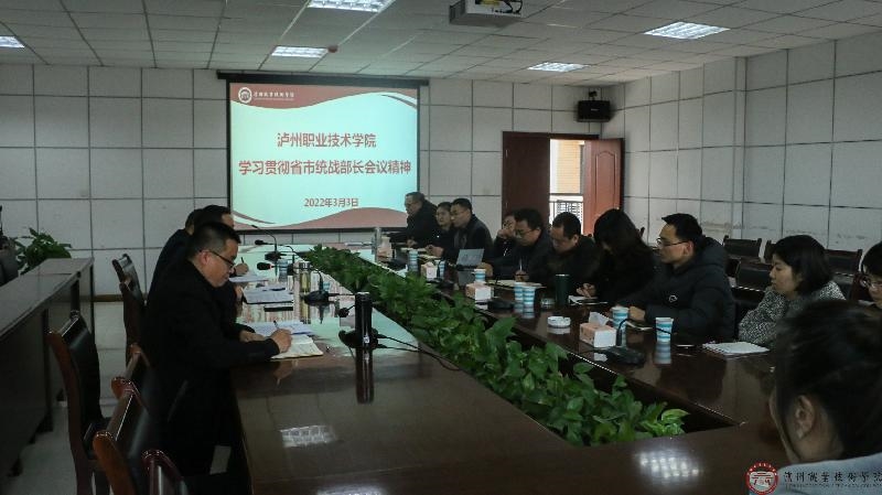 3月3日,泸州职业技术学院召开学习贯彻省市统战部长会议精神专题会。学校党委副书记吴代彬,党委常委、统战部部长曾国锋出席会议,各民主党派、统战团体负责人,各级人大代表、政协委员参加会议,会议由统战部副部长王锋主持。