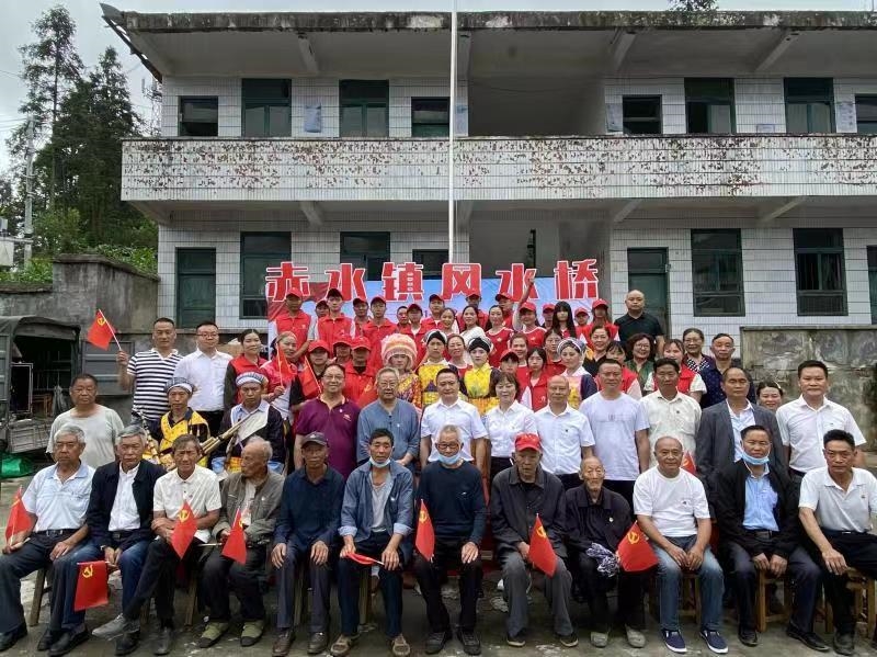 赤水镇三分村风水桥是“茶马古道”的一个重要驿站。村党支部选择在此举办,目的是传承先辈留下来的宝贵精神财富,挖掘和发展“风水桥”这张历史名片,打造乌蒙山区红色旅游项目,为“南翼”叙永特色发展贡献“红色”力量。