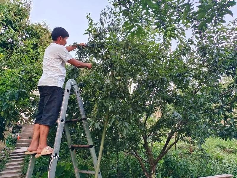 张有洪以前在外务工,40岁时诊断为帕金森,肢体三级残疾,便选择回乡创业,栽种了多个品种的李子苗,悉心照料,即使腿脚不便,也没有放弃。今年,多个品种的李子都获得了丰收,产量达到2000余斤。