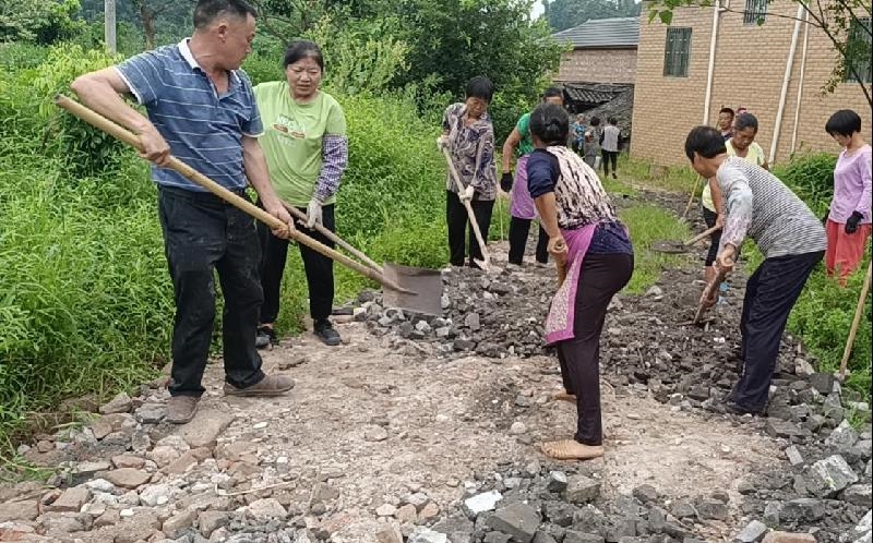 很快,铺设路面所需的石子运送到位,在镇内乡贤的带动下,30多名群众顶着烈日,自发参与铺路工作。乡贤匡思林说:“路是大家的路,我们不能只想着等项目靠政府,每一个人都要行动起来,有钱的出钱,有力的出力,齐心协力把这条路修好!”