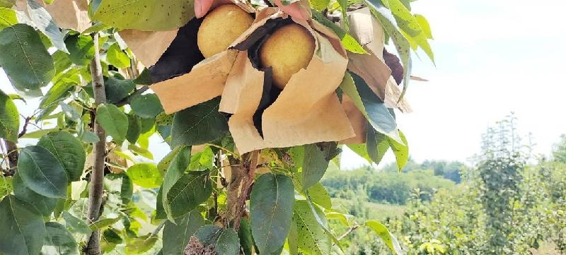 进入6月,持续的降雨和7月初连续的40°高温天气,武学文特色水果基地里种植的近100亩翠冠梨受到了一定影响。由于基地土壤较薄,面对高温天气,虽然天天浇水,并给梨园遮荫,但依旧造成了一定损失,因被太阳灼伤,梨子颜值大打折扣。往年8元/斤且全由游客进园采摘的翠冠梨,今年4元/斤还要工人送到集市上吆喝销售。还有,10余亩的猕猴桃树,有的叶子都晒干了。