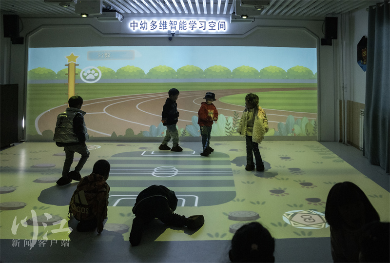 金珠镇幼儿园大班达玛班的柏玛娜姆可喜欢这样的学习方式了,教室的墙上和地上都有各种各样的画面,画面里有很多游戏非常好玩。通过这些游戏,小朋友们学会了各种书本上没看到过的知识。“未来教室就是神奇的百变空间,书本上的很多知识在这里都变活了,在空间里动了起来。 我很喜欢未来教室 ,希望天天在这里上课。”柏玛娜姆高兴地说。