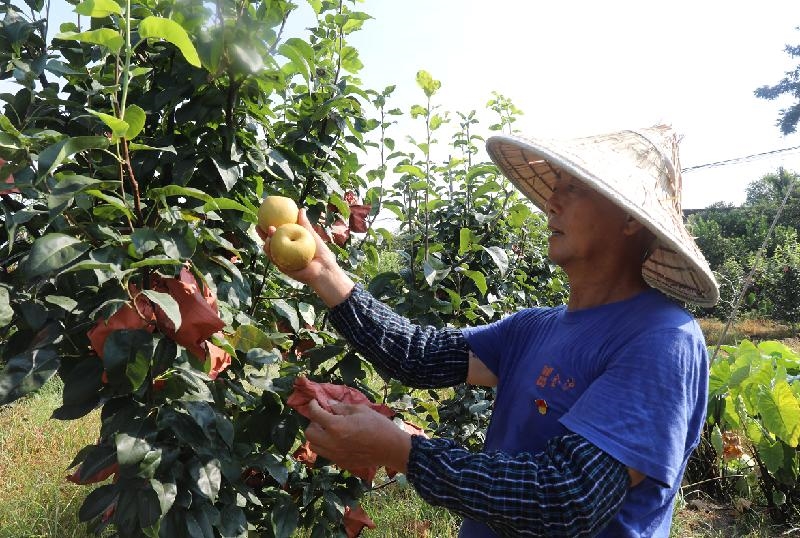 果园里,大家顶着高温干得热火朝天,忙得不亦乐乎。叶贵华家今年种植翠冠梨3亩多,预计收入1.5万元。翠冠梨采摘完,自家的黄金梨又该上市了,柑橘园里的橘子也沉甸甸压弯了枝头。又是一个丰收季,全生产队54户人家300多亩的脆冠梨,今年又卖到了好价钱。看着一筐筐梨子装箱运走,叶贵华心里比吃了蜜还甜。
