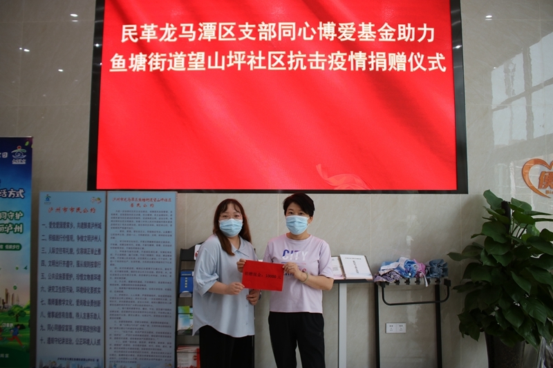 疫情不止,爱心不息。民革龙马潭区支部“同心博爱基金”向鱼塘街道望山坪社区捐赠防疫善款1万元;民建龙马潭区基层委员会、区工商联会员企业四川好食在连锁便利店有限公司向辖区内5个街道捐赠价值2万余元的物资;致公党党员、四川巴蜀好利食品有限公司董事长刘勇向一线防疫人员捐赠价值4万余元的面包、糕饼等方便食品;区工商联副主席、区乡联会副会长、四川省泸州市建设工程有限公司总经理曾川浩向鱼塘街道捐赠矿泉水、方便面、牛奶共150件······