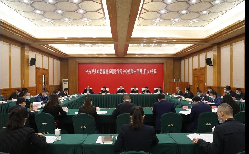 11月1日,泸州市委统战部理论学习中心组集中学习(扩大)会议召开,专题传达学习党的二十大精神。市委常委、统战部部长李堂兵主持会议并讲话。