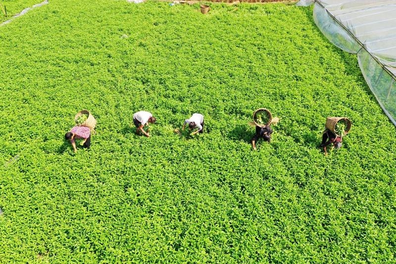据了解,该农场种植的空心菜收获期长达8个月,总产量达200多万斤。