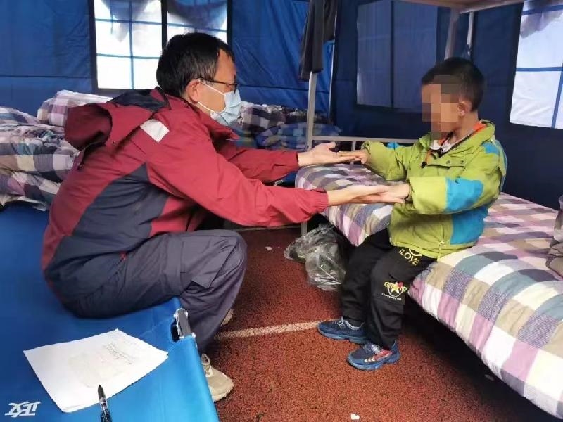 作为第一批救援队队员进入到草科乡,破碎的老房子、哭泣的小朋友、不定时的余震让龚科感到了震撼,这一幕幕的场景让他更加坚定了作为医生的责任。龚科与同行队员一起,利用丰富的心理危机干预处置经验,从积极心理暗示、避免负面情绪生成、缓解心理压力等方法,帮助灾区群众进行心理疏导,共评估120余人,给予面对面干预20多人,取得了较好成效。