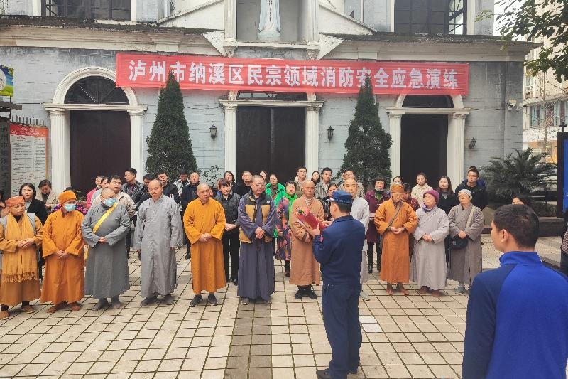 为提升各宗教活动场所消防安全应急处置能力,纳溪区委统战部(民宗局)在安富天主教堂举行了纳溪区民宗系统消防安全应急演练,邀请消防战士为辖区40余名统战干部、宗教活动场所负责人讲解消防安全应急知识,并进行了模拟灭火和应急疏散演练,发放消防安全应急知识宣传资料100余份。
