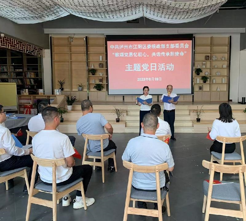 近日,江阳区委统战部支部委员会开展“四个一”活动庆祝中国共产党成立 102 周年,并深入学习贯彻党的二十大精神,进一步加强机关支部组织建设和党员干部队伍建设。