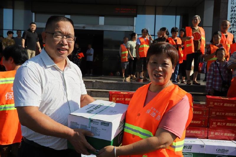进入8月,泸州区域高温天气不断,最高气温接近40℃,给坚守在一线的工作人员带来严峻的“烤”验。泰安街道在了解到一线工作人员“迎酷暑 战高温”坚守岗位的工作情况后,积极与辖区新联会及爱心企业对接,筹得3万余元的清凉物资,共同为奋战在街道一线的民警、环卫工作者等送去夏日的清凉与关怀。