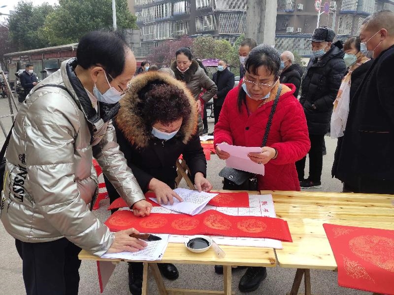 春节期间,民建龙马潭区基层委、西南医科大学支部到石洞街道永寿社区开展活动,为社区居民义务写春联,送去浓浓新春祝福和关怀。书法家们挥毫泼墨,一句句散发着清新墨香的喜庆吉祥语跃然于纸上,居民们围在书桌两旁,期待着领取成品,展现出团结一家亲的温馨氛围。