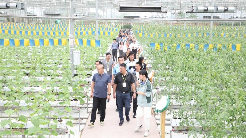 交流团走进董允坝现代农业园区内部,看见水培设备鳞次栉比、井然有序,各类蔬果竞相生长、生机勃发,棚内园艺绿满枝头、分外妖娆,集中展示了都市现代农业、科技农业、生态农业、休闲农业风貌。