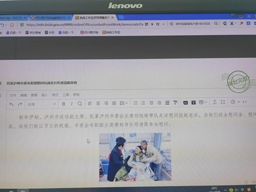 新年伊始,泸州市政协副主席、民革泸州市委会主委刘旭晴带着崇高的敬意,带队走访慰问抗战老兵,为他们送去慰问金、慰问品,向他们致以节日的祝福。市委会专职副主委兼秘书长邓清霞参加慰问。