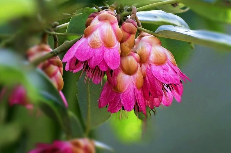 沐浴初春的晨光,喜得繁花满天。桃红的花朵形似灯笼、美如菡萏、娇艳欲滴。