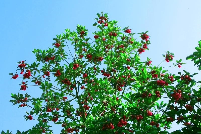 绿叶连云滴苍翠,红花映日霞染天。