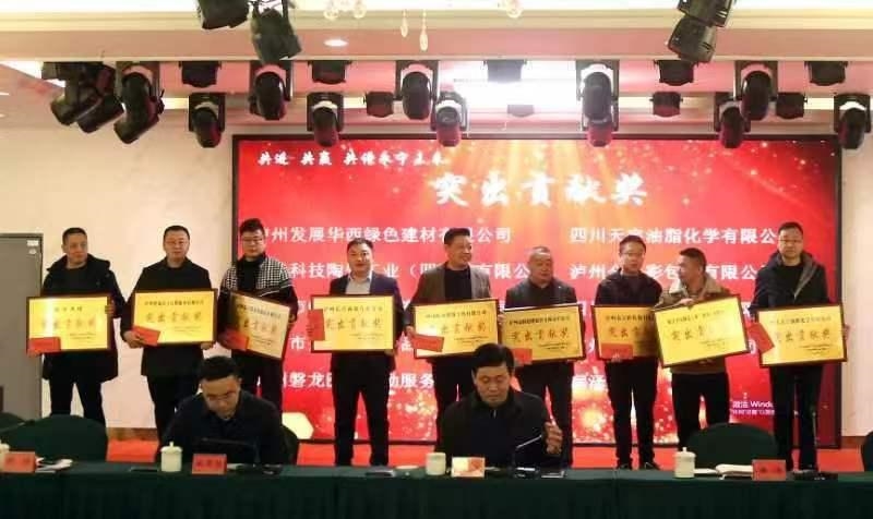当天,参加活动的相关区领导和街道负责人还为四川宝晶玻璃有限责任公司、泸州集展佳酒类销售有限公司、泸州九禾贸易有限公司等3家企业颁发“卓越贡献奖”,为泸州发展华西绿色建材有限公司、四川天宇油脂化学有限公司、锐佳科技陶瓷工业(四川)有限公司、泸州金之彩包装有限公司等10家企业颁发“突出贡献奖”。