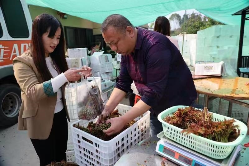 乡村振兴,企业参与,产业先行。在“万企兴万村”行动中,纳溪区结合村企“联姻”帮扶,狠抓引领示范,积极探索“企业带动型”兴村路径,支持民营企业以参股控股、合资合作等形式,引导民营企业与村集体组织结对共建。“区工商联、安富街道积极为我村招引企业和业主,支持业主在村上大力发展红香椿等特色种植业,努力将红香椿产业打造成助力乡村振兴的‘美味’产业,帮助村民在家门口增收致富。”桂花村党支部书记段然说“椿”意盎然香万里,产业富民促振兴。2021年11月,通过流转380余亩土地建设的安富街道桂花村红香椿产业基地,是纳溪区“万企兴万村”行动重点打造的产业基地之一。该基地采取“党支部+企业+专合社+种植户”运作模式,由桂花村集体经济公司、泸州乾惠香椿芽种植专业合作社、民营企业入股合作经营。