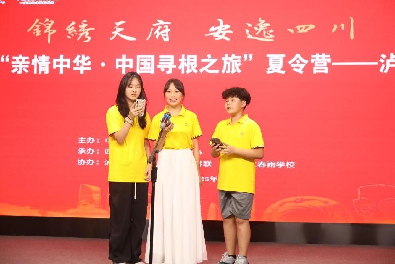 傍晚,泸州市侨联和龙马潭区侨联精心组织了泸州营结营交流演出。营员们和泸州天立春雨学校的学生们表演了歌曲《灯火里的中国》、舞蹈《丽人行》、古筝《雪山春晓》、电子琴《萱草花》以及龙马潭区龙谭川剧社表演的川剧变脸等精彩节目,在歌声舞姿中交流着中华文化韵味与跨洋亲情。
