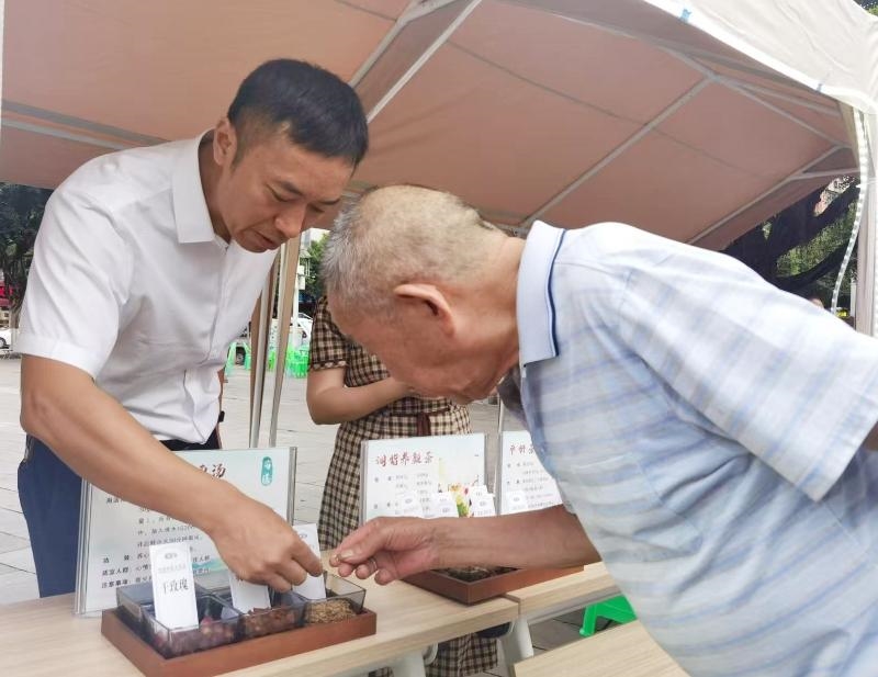 活动现场,九三学社泸县基层委副主委、泸县人民医院副院长张北南组织医院相关人员热闹摆摊“开市”,为群众开展问诊把脉、推拿治疗、中药外敷、拔罐、三伏贴贴敷等中医理疗项目,提供养生茶饮免费品尝、中医药文化知识科普、中医问诊咨询、夏季养生建议等服务,让“治未病”理念以更接地气的方式走进群众日常生活。