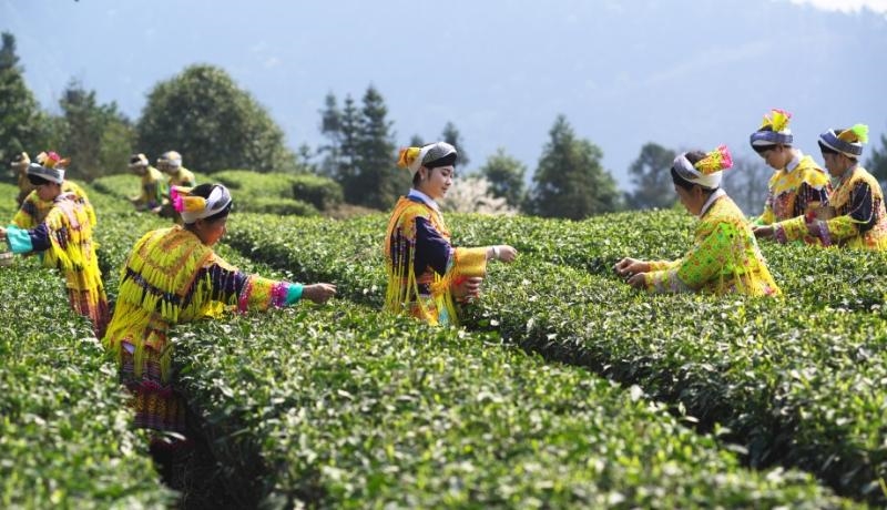 紧紧围绕“共同团结奋斗、共同繁荣发展”主题,不断夯实民族团结物质基础。以茶产业为纽带,通过“全链条布局、多业态融合”的发展路径,构建起民族团结与经济繁荣的共赢格局。依托新羽茶庄、奢府茗茶等龙头企业,形成了涵盖建新春露、建新新羽、蔺州雨露等10余个特色产品的茶产业体系,并通过延伸红茶、花茶品类,打造“种植-加工-体验-消费”一体化产业链,有效带动各族群众就地增收。同时,以茶企集群为核心推动农文旅深度融合发展,构建“住茶园、品茶饮、购茶产、赏茶景”的全链条体验模式,在赤水河左岸打造茶庄园地标,培育“民宿+康养”新兴业态,持续放大特色产业优势。在基础设施提升方面,通过茶旅环线和村寨主干道的景观化改造,以象征祥瑞的桂花树和苗族纹饰太阳能路灯为特色,将“茶香漫道”升级为展现民族团结的“共富路”和“幸福灯”,使发展成果以可感可见的方式惠及各族群众,最终实现产业兴旺、生态优美、民族和睦的协同发展。