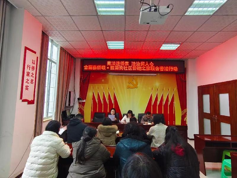 为进一步弘扬宪法精神,增强侨界群众法治意识,近日,古蔺县侨联联合胜蔺街社区“侨胞之家”共同开展“宪法进侨家 法治润人心”联合普法行动。活动通过“室内专题宣讲+户外互动宣传”的创新形式,将法律知识送到侨胞身边,推动宪法精神融入侨界日常生活,营造“知法、守法、用法”的良好氛围。