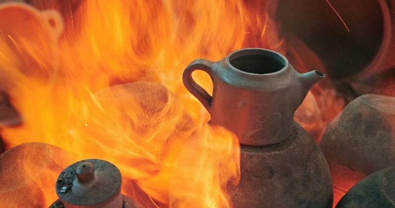 制作过程全程手工。泥料经慢轮手工塑形,匠人以指尖控制厚度与弧度,使锅体均匀自然,并以竹刀修整轮廓,刻绘质朴纹样。煅烧环节在传统馒头窑中进行,温度控制在一千至一千二百摄氏度之间,烧制约一小时。出窑时以当地新鲜柏香叶覆盖,利用闷燃产生的无氧还原反应,使砂锅表面自然形成温润釉色,每件产品釉面肌理皆具独特性。