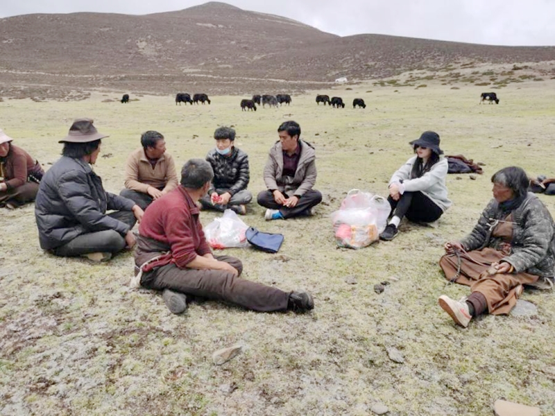 2020年8月,周云帆在普牙村牛场与牧民一起商议牦牛养殖事宜。