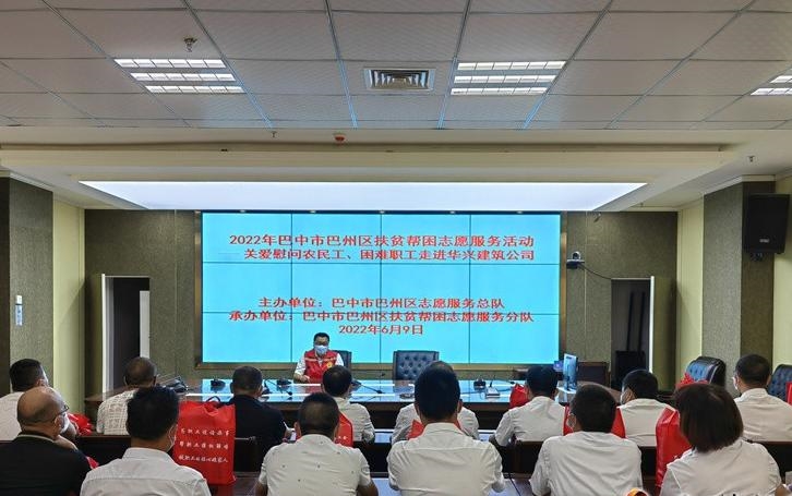 为扎实推进创文工作走深走实,近日,巴州区扶贫帮困志愿服务小分队一行走进民营企业华兴建筑公司,开展农民工及困难职工慰问活动。