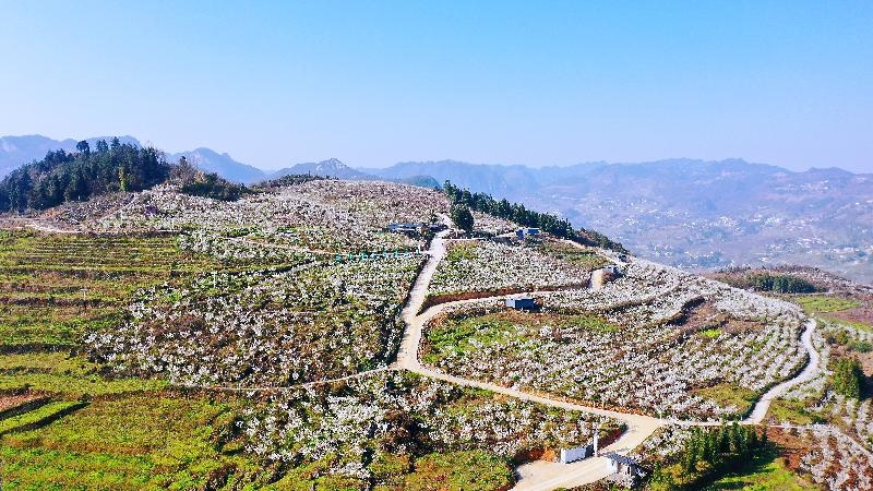 春回大地,万物复苏。在古蔺县金兰街道天堂村乡贤产业园区,千亩樱桃花竞相绽放,漫山遍野的樱桃花雪白一片,把翠绿的青山装扮得如“堆云叠雪”,美不胜收,宛若天堂。