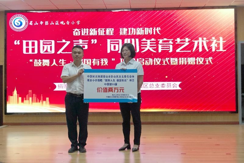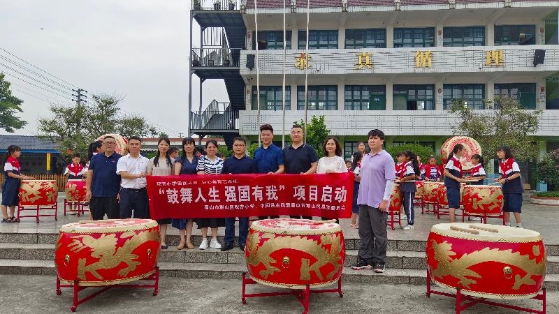 “为贯彻落实习近平总书记指示精神,我们筹划了‘鼓舞人生,强国有我’项目,”民盟彭山区总支主委唐建超说“利用中国鼓激昂奋发的气势激励孩子们更爱祖国、爱学习、爱劳动,积极进取,追求卓越。”6月15日,民盟彭山区总支为观音小学“田园之声”同心美育艺术社策划筹备的‘鼓舞人生,强国有我’项目正式启动。