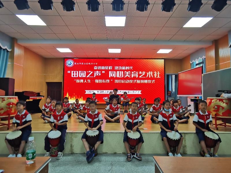 “鼓舞人生,强国有我”项目由民盟彭山区总支策划和筹备,并为观音小学捐赠30面中国鼓、10面非洲鼓、10把尤克里里,安排2位从事音乐教育的盟员长期义务指导教学。“鼓是群音之首,是最早与劳动融合在一起的器乐之一,是我们优秀传统文化的重要组成部分,”民盟彭山区总支副主委杨静说“我们这个项目的主旨就是将优秀传统文化融入到社会主义核心价值观之中,融入到德智体美劳五育融合之中,为孩子们的成长汇聚更多的正能量。”