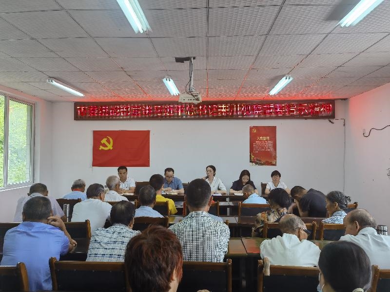 在盘龙村村委会,潘素梅一行与村干部进行了座谈交流,了解近期工作重点和困难情况,为盘龙村光荣在党50年的邱建良颁发党章,并组织联系村全体党员重温入党誓词。随后在宣讲会上,潘素梅结合工作实际,重点从乡村振兴和粮食安全等方面,为大家深入解读习近平总书记来川视察重要指示精神。