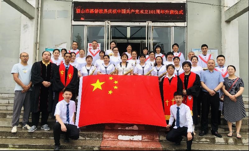 7月1日上午,眉山市民宗局组织全市基督教教职人员和堂点负责人等30余人在东坡区太和基督教堂举行了集中升国旗仪式。全市各宗教活动场所均举行了升国旗仪式。