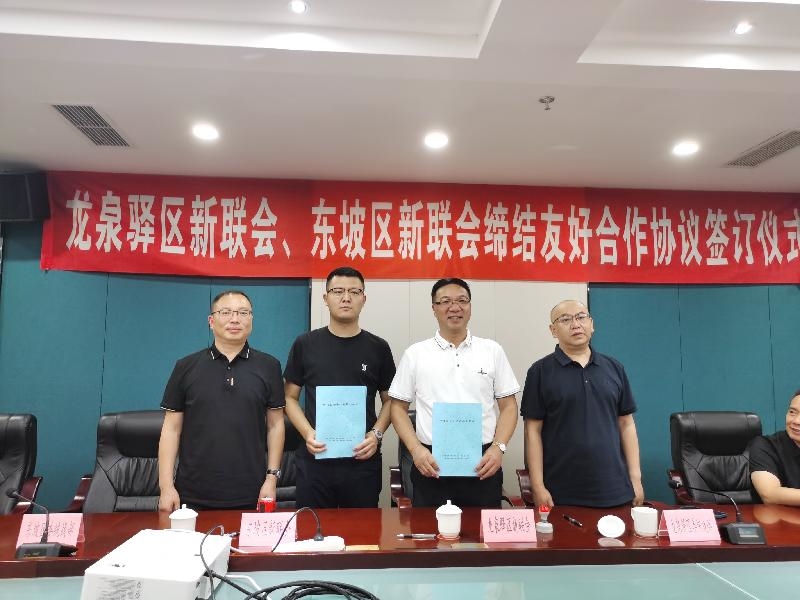 7月8日,东坡区新联会与龙泉驿区新联会签订“友好新联会”协议,缔结友好合作。东坡区委统战部副部长、区工商联党组书记杨舜雄、龙泉驿区委统战部副部长、区工商联党组书记何及和两地新联会负责人参加签订仪式。