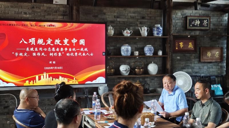 近日,东坡区同心志愿服务中心充分发挥统战团体政治引领作用,组织30余名志愿者开展“学规定、强作风、树形象”主题教育,通过“沉浸式教育+专题学习”双轮驱动,筑牢统一战线志愿服务队伍思想根基。
