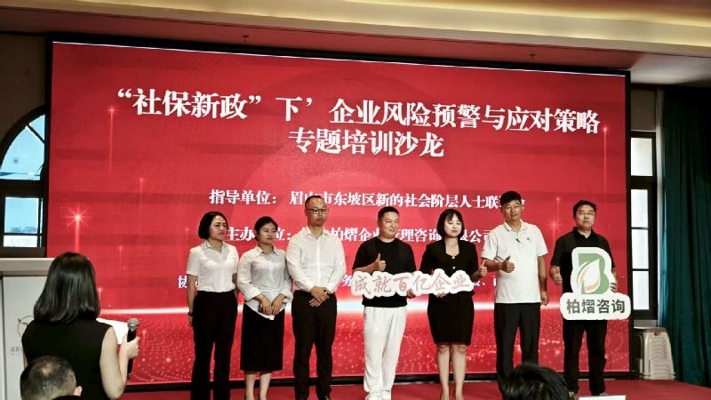 为积极响应国家政策,助力我区小微企业准确把握社保立法精神,实现合规与高质量发展,8月19日下午,由东坡区新联会指导、会员企业眉山柏熠企业管理咨询有限公司主办的“社保新政下企业风险预警与应对策略专题讲座”成功举办。本次专题培训特邀资深人力资源与社保实务专家王飞担任主讲嘉宾。东坡本土多家企业负责人、人力资源管理者及财务相关人员参加活动。