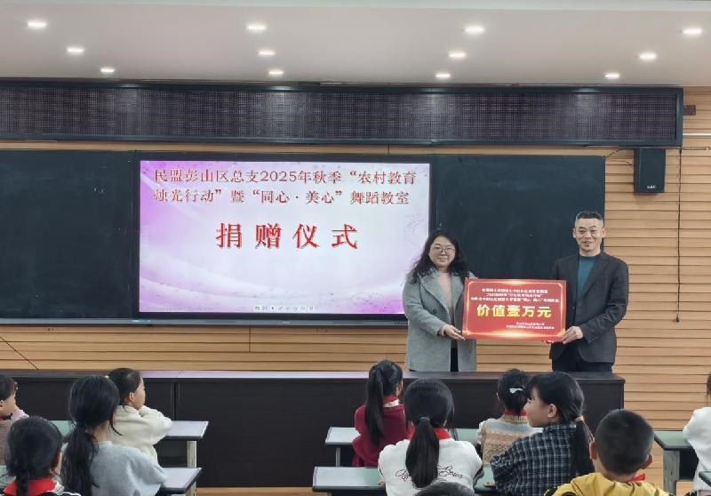 10月31日,民盟彭山区总支组织盟员赴谢家小学,举行2025年秋季“农村教育烛光行动”暨“同心·美心”舞蹈教室捐赠活动。