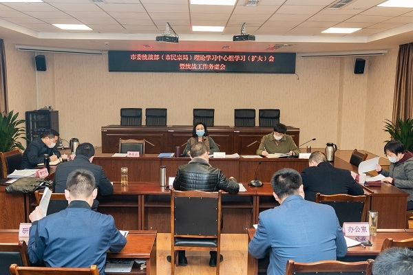 3月16日,受市政协党组书记、主席,市委统战部部长李亚莲同志委托,市委统战部常务副部长袁蓉主持召开理论中心组学习(扩大)会暨统战工作务虚会。市委统战部领导班子成员、各科室负责人参加会议。