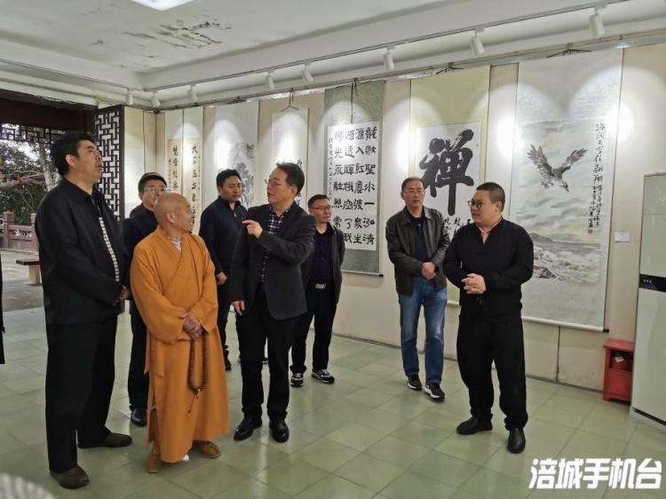 考察组一行来到圣水寺详细了解中国化示范场所建设情况,实地查看圣水寺中国化示范场所重点打造的“两院两廊两室一会一坊”(圣水寺书画院、圣水寺龙江明苑、佛教雕塑艺术长廊、佛教法治建设长廊、圣水寺中国化陈列室、佛协办公室、海灯文化研究会和圣水寺心灵工坊)。